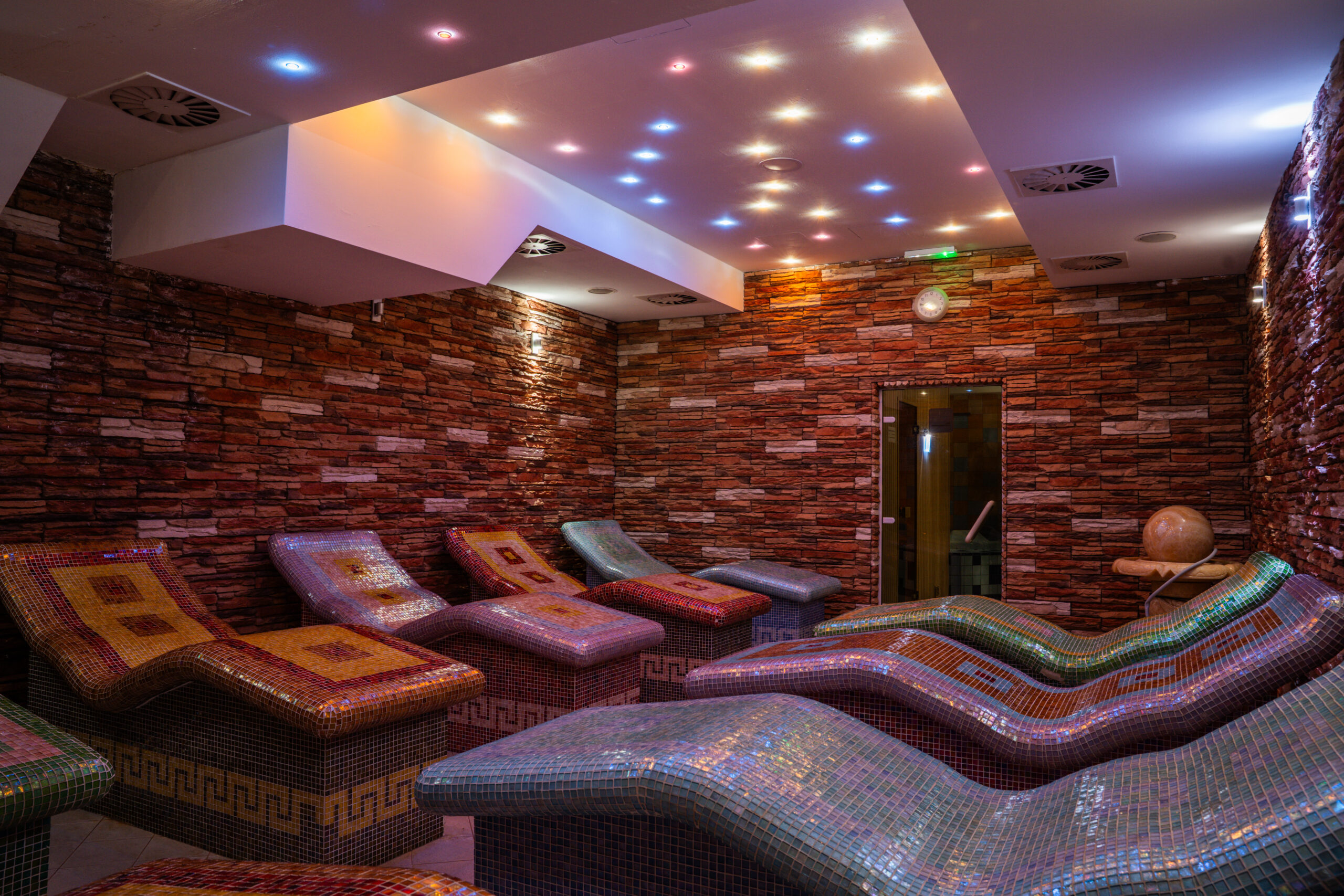 Wellness centrum s dvomi fínskymi saunami, infra saunou, soľnou saunou a tradičným hamamom. Ideálne miesto na regeneráciu, uvoľnenie svalov a očistu tela. Súčasťou je aj ochladzovací bazénik pre dokonalé osvieženie.