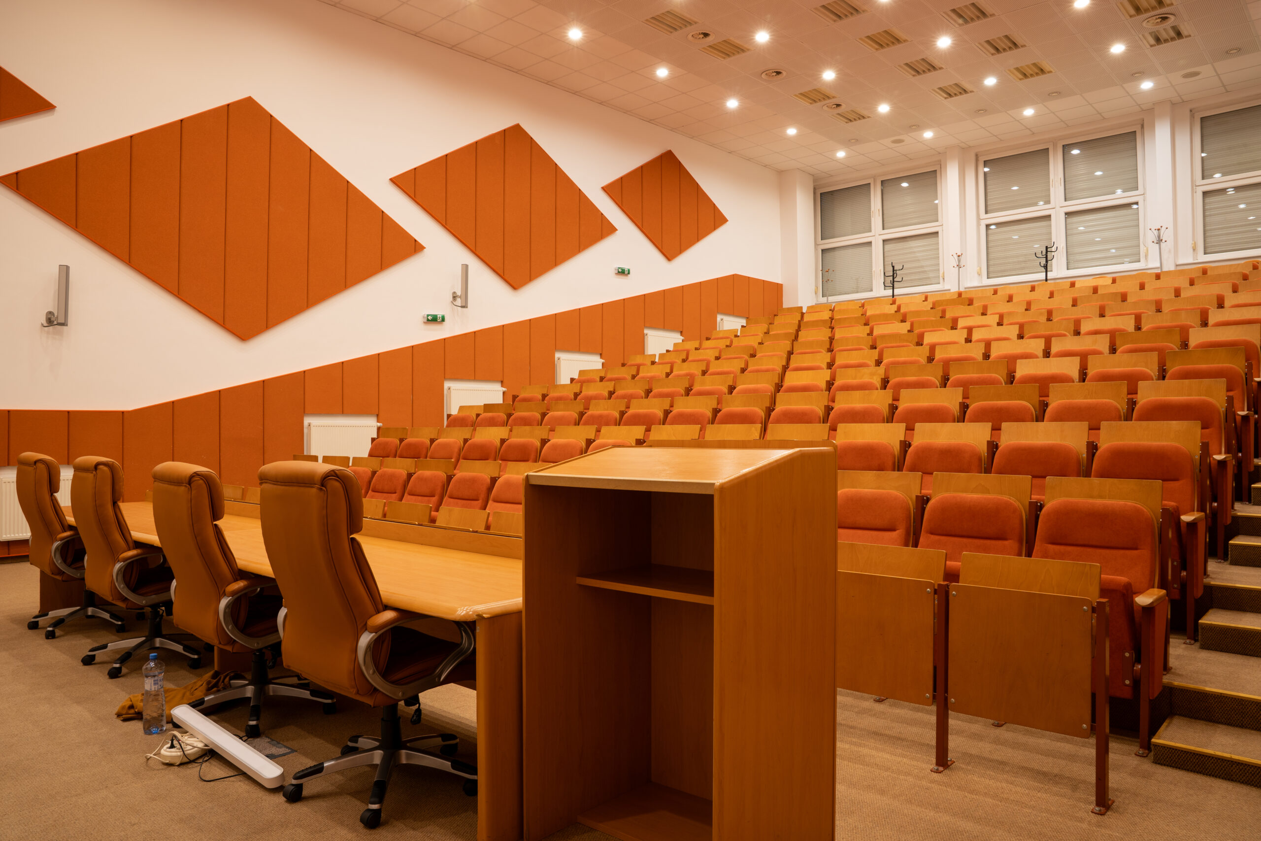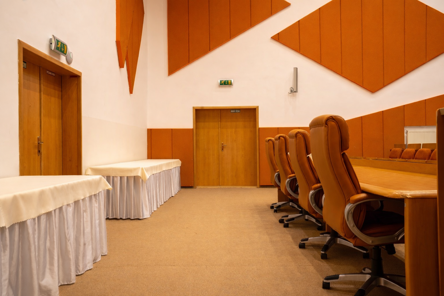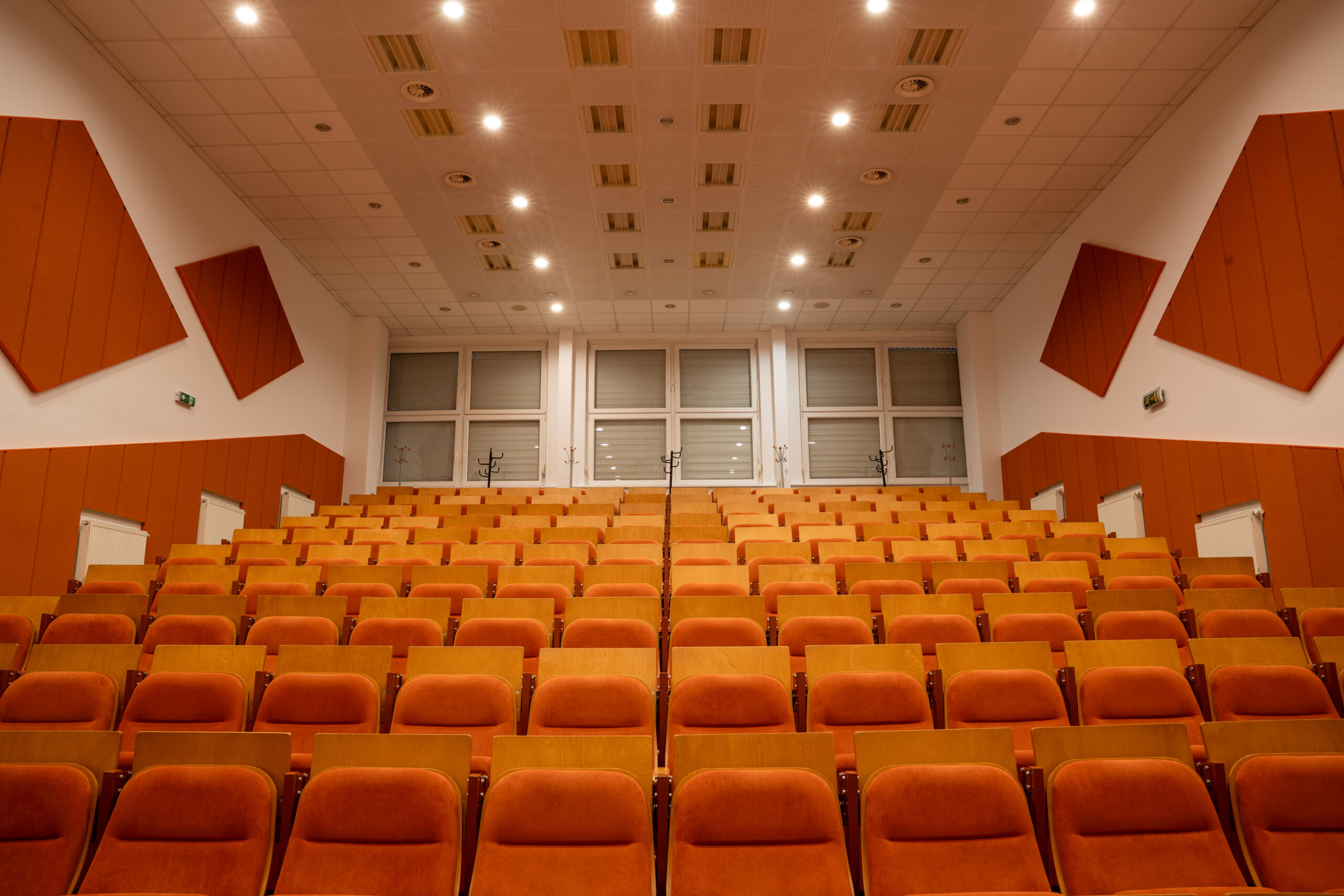 Miestnosť je plne klimatizovaná a ponúka flexibilné usporiadanie sedenia (školské, divadelné alebo do „U“). Na požiadanie zabezpečíme technické vybavenie a catering podľa vašich potrieb