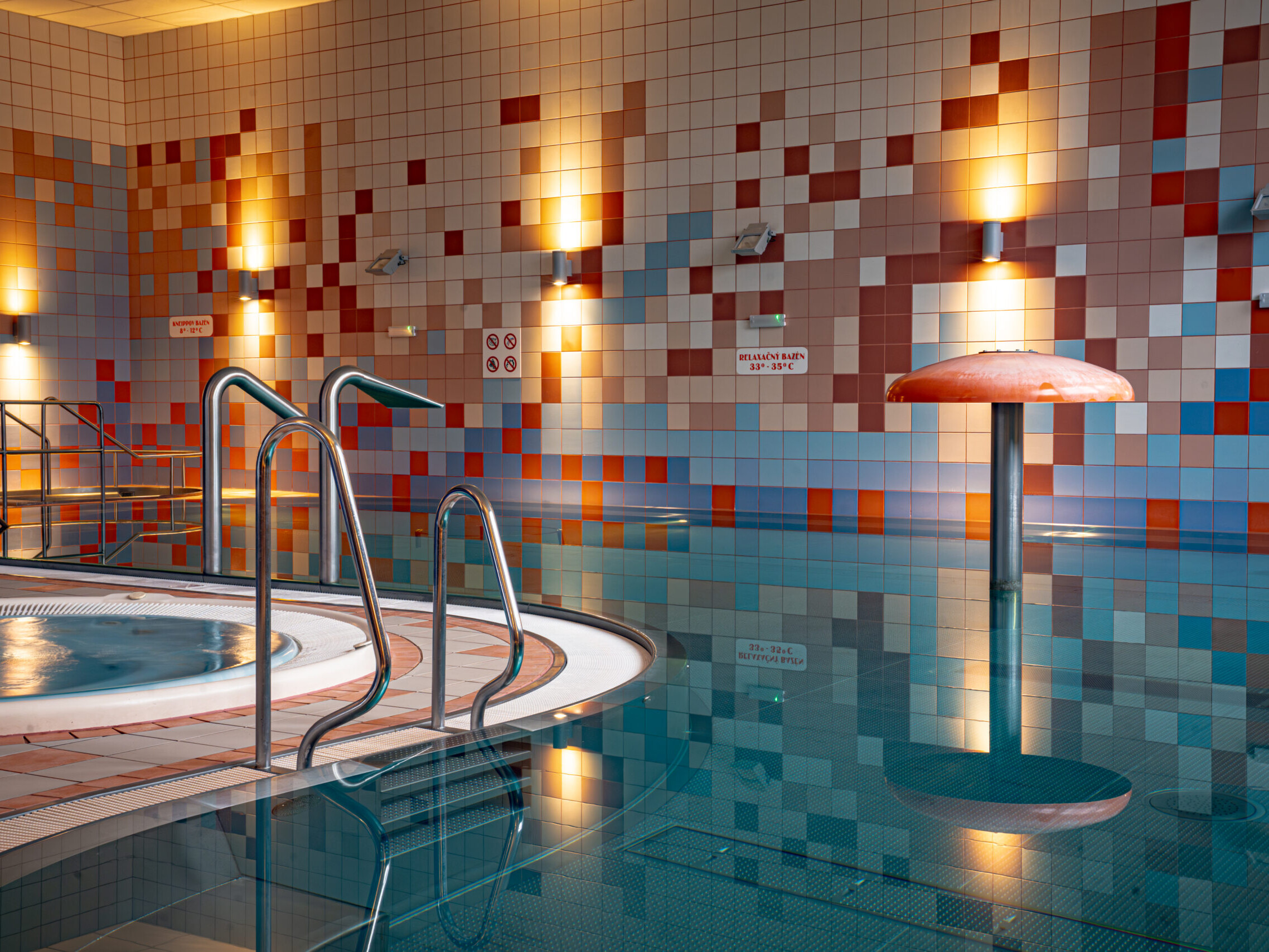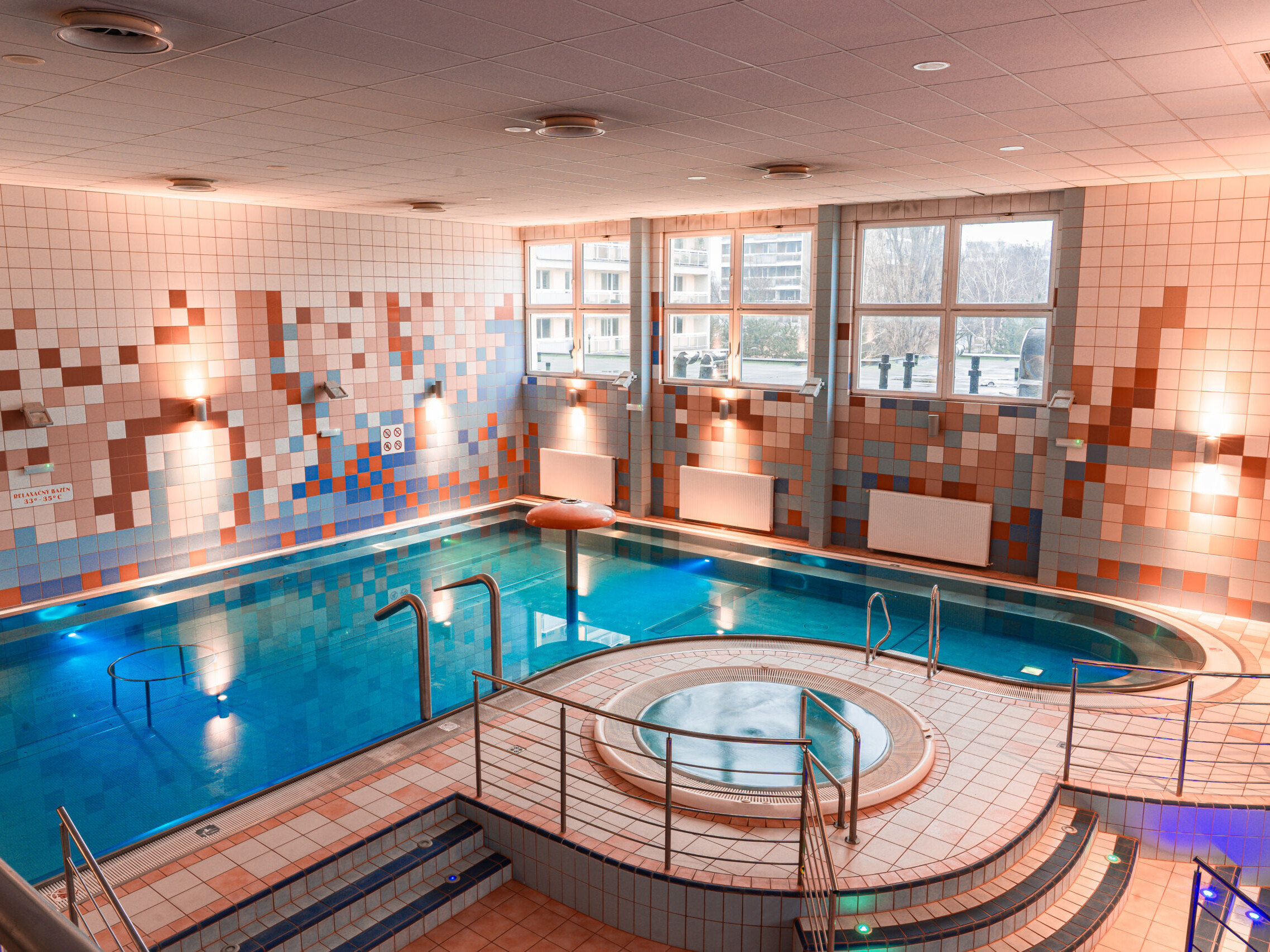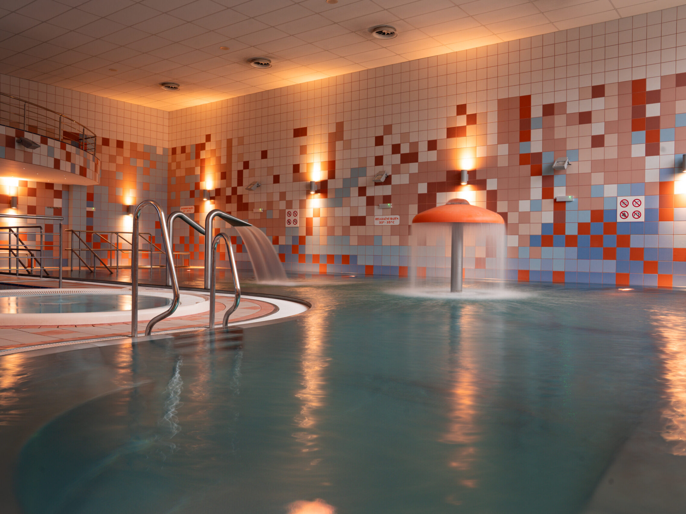 Bazénová časť ponúka ideálne spojenie aktívneho pohybu a dokonalého relaxu, plavecký, relaxačný bazén aj vírivky na jednom mieste.